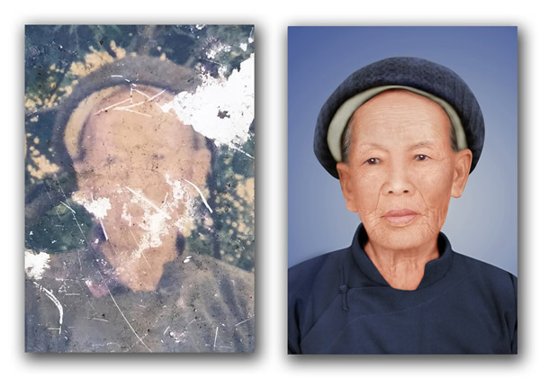 旧照片处理分为修复和翻新。旧照翻新即老照片翻新,就是利用传统的美术制作以及摄影技术或者是运用计算机图形图像技术将老化、变质的相片在尽量保持原有格调的基础上翻新放大。照片修复是在照片本身的破坏程度不是很大,或者可以用移植的办法补全,保持原照片的质感。这样就可以尽量不作大的修改。只要顾客满意,对修片人来说也修得轻松。